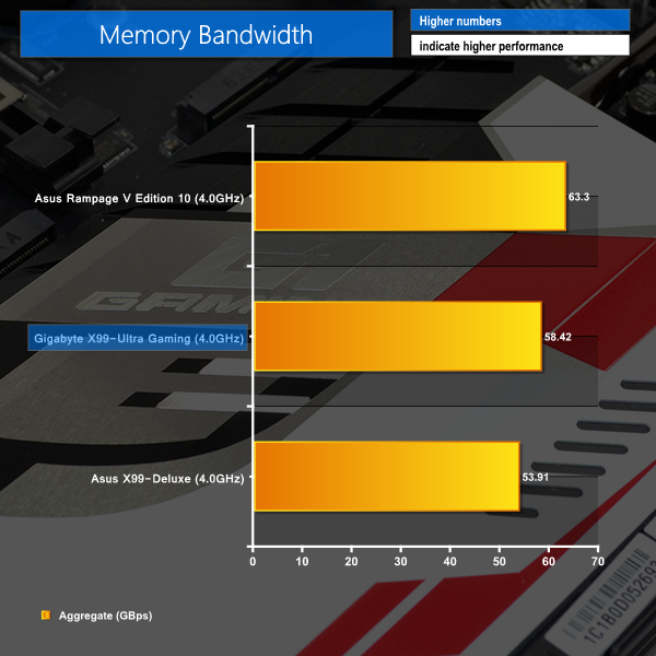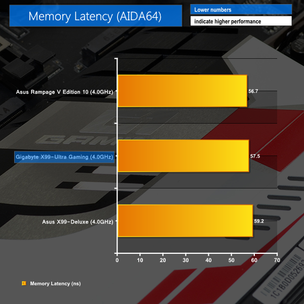 Memory performance of the X99-Ultra Gaming is solid. The board manages to beat out Asus' older X99-Deluxe, but it can't match the numbers shown by Asus' flagship Rampage V Edition 10. That's a pretty fair result given the significant price differences.