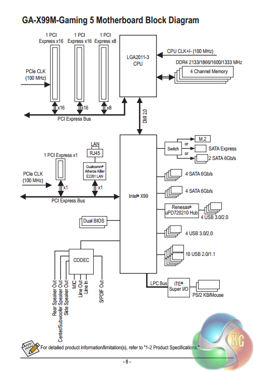 Gigabyte provides a block diagram of its motherboard in the manual. This is a very smart move, especially on the enthusiast X99 platform, as users can decipher the board's operating characteristics to provide their system with the most effective level of performance.