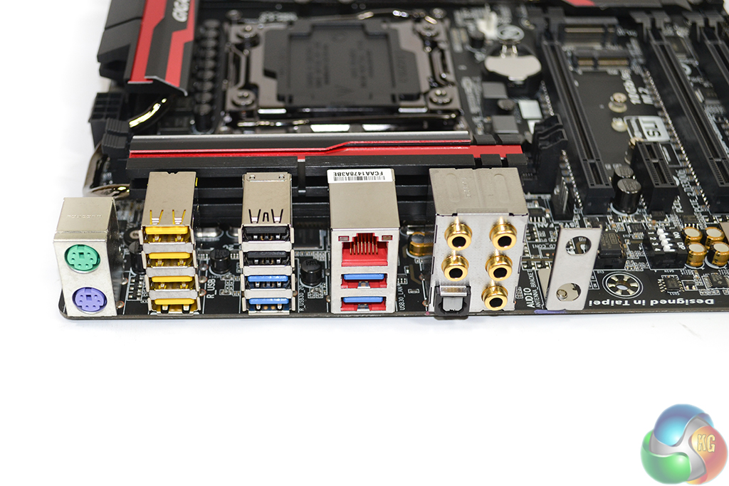 The four USB 3.0 ports are provided via a Renesas uPD720210 4-port hub. A further six USB 2.0 ports are present, the yellow four of which are ‘DAC-UP' ports that are fed a clean voltage signal for improved audio quality delivery. Two PS/2 ports may be welcomed by some users.