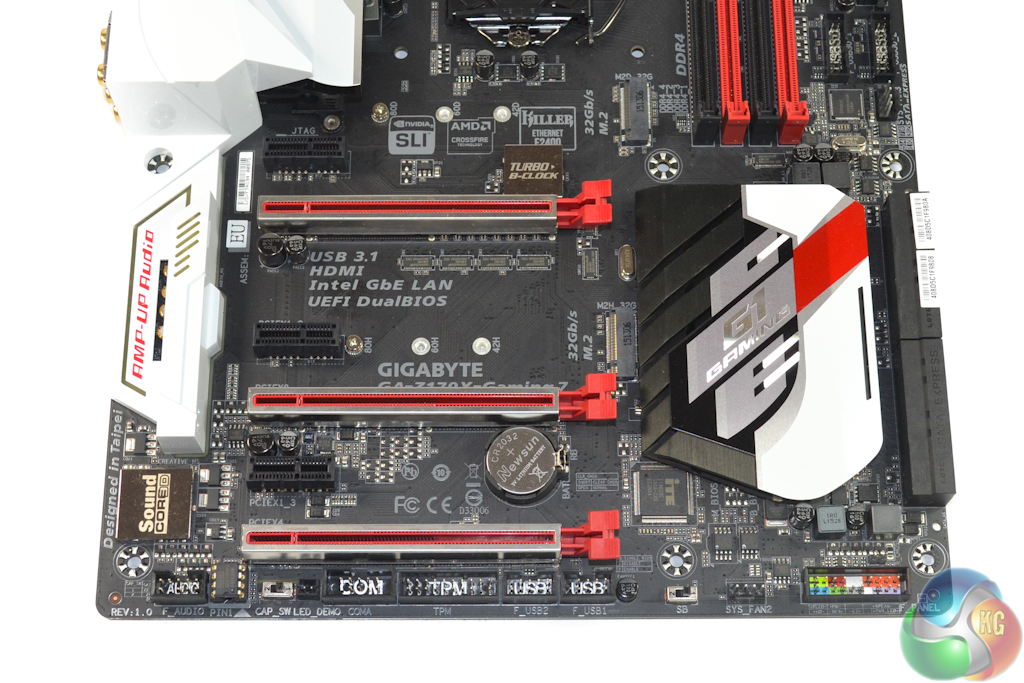 The first noticeable point for the Gigabyte Z170X-Gaming 7 motherboard is its red, white, and black colour scheme. Gigabyte has deployed a balance of colours that, in my opinion, works well to create a good-looking motherboard.