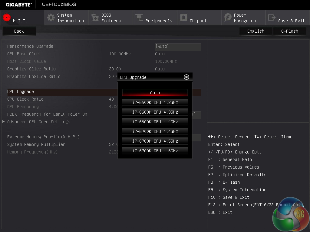 Gigabyte includes a number of Performance and CPU Upgrade pre-set profiles. The CPU Upgrade profiles worked well with our Core i7-6700K chip and used sensible voltage settings.