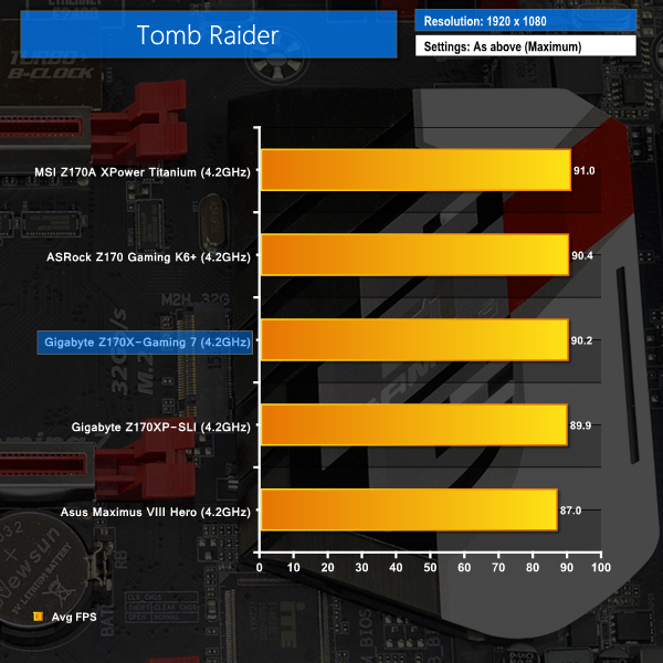 We used a 1920×1080 resolution and the Tomb Raider built-in benchmark set to maximum quality, with TressFX disabled.