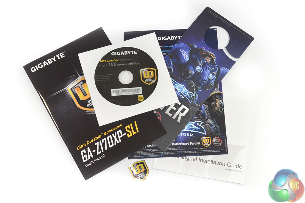 The standard set of documentation is supplied – a user manual, driver CD, and case sticker. A Heroes of the Storm branded door hanger and leaflet are also provided.