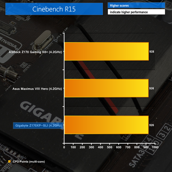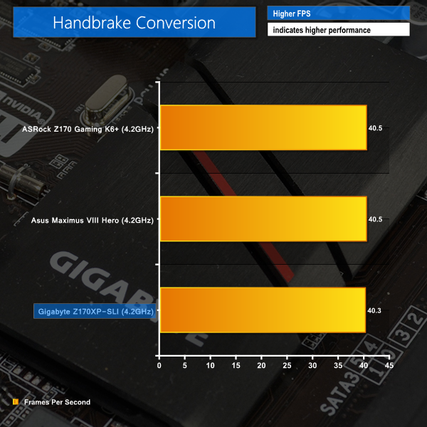 The board's reduced memory performance has little affect on CPU-heavy workloads. The Z170XP-SLI scores a bottom-place finish in our Handbrake conversion test, and is joint-last in Cinebench, but the margins are small.