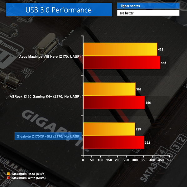 Using our Windows 7 test system, which is soon to be updated, USB 3.0 performance tops out at around 350MBps due to no UASP driver being present inside the older OS.