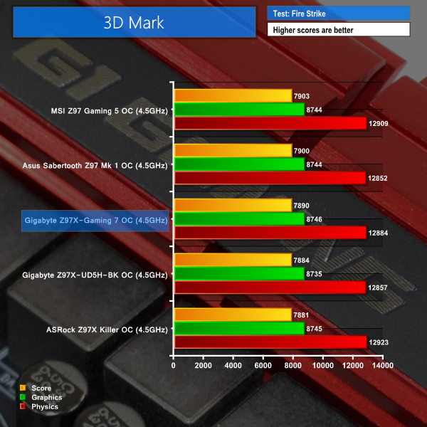 We will outline the performance increases that can be obtained from using the Gigabyte Z97X-Gaming 7 motherboard to overclock our system. Our overclocked processor frequency was 4.5GHz and memory speed was 2400MHz.