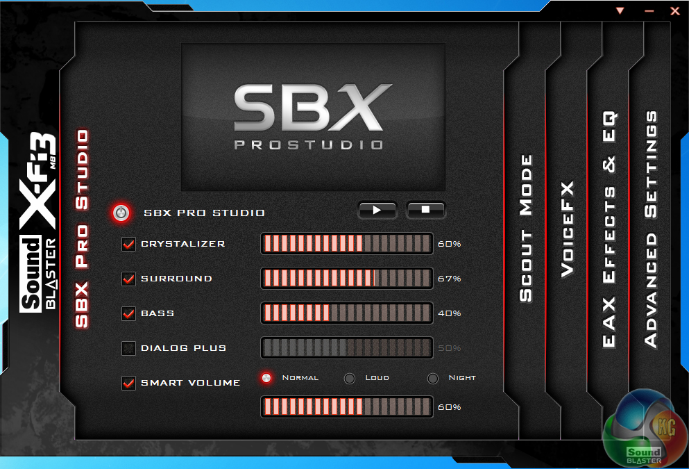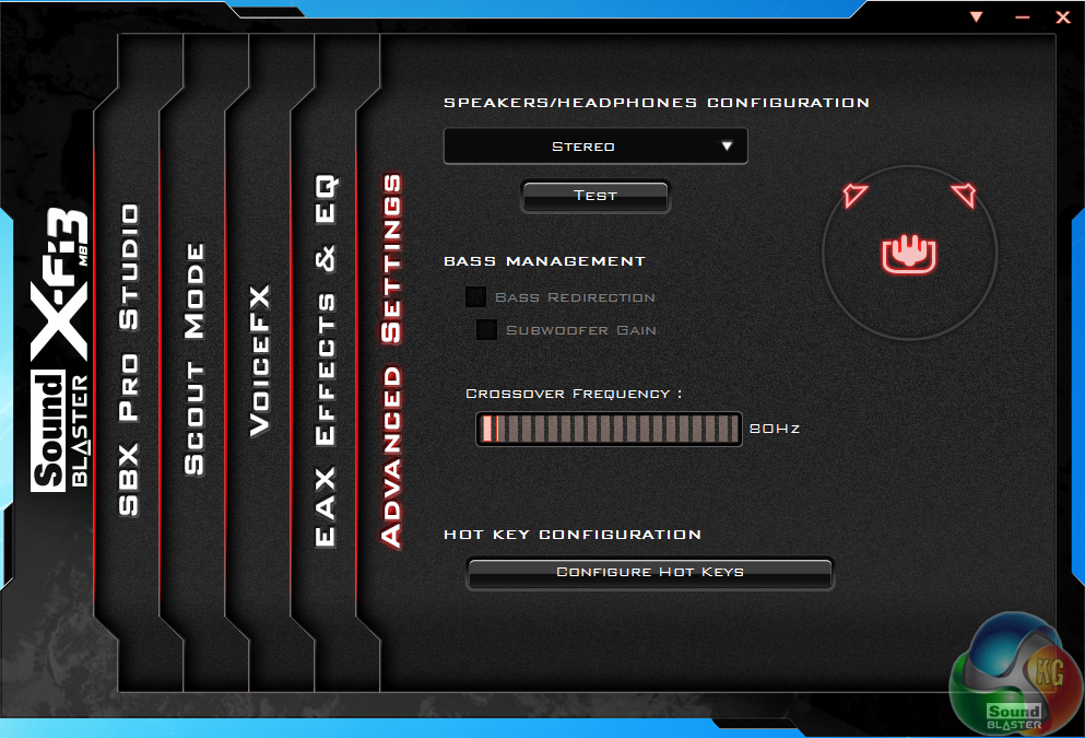Sound Blaster X-Fi MB3 software can be used to quickly adjust audio configurations based upon the user's tasks. Different settings can be adjusted to suit one's setup and preferences.