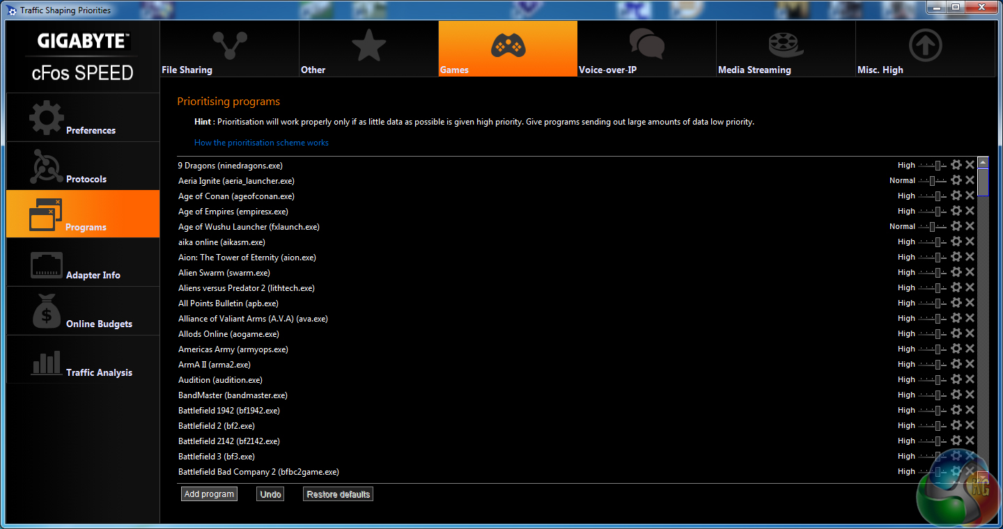 cFos speed is supported on Gigabyte's motherboards with an Intel NIC, and can be used to manage one's network. Prioritisation of gaming is one of the key features, although cFos Speed may be more useful to users without bandwidth-prioritising routers.