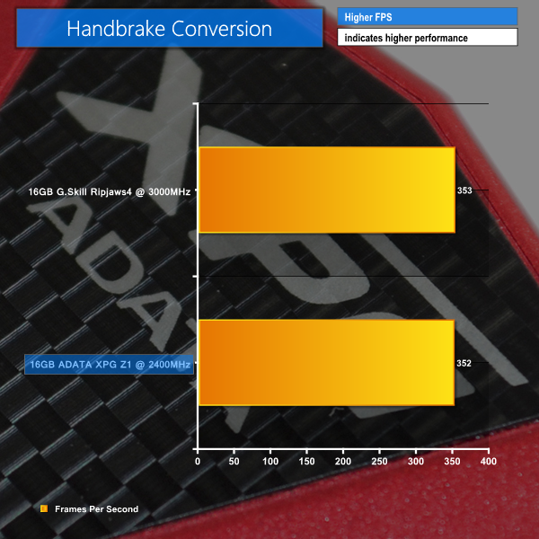 There were no issues with the Handbrake conversion performance – Gigabyte's frame rate for the Z97X-UD3H-BK sits close to the chart toppers.