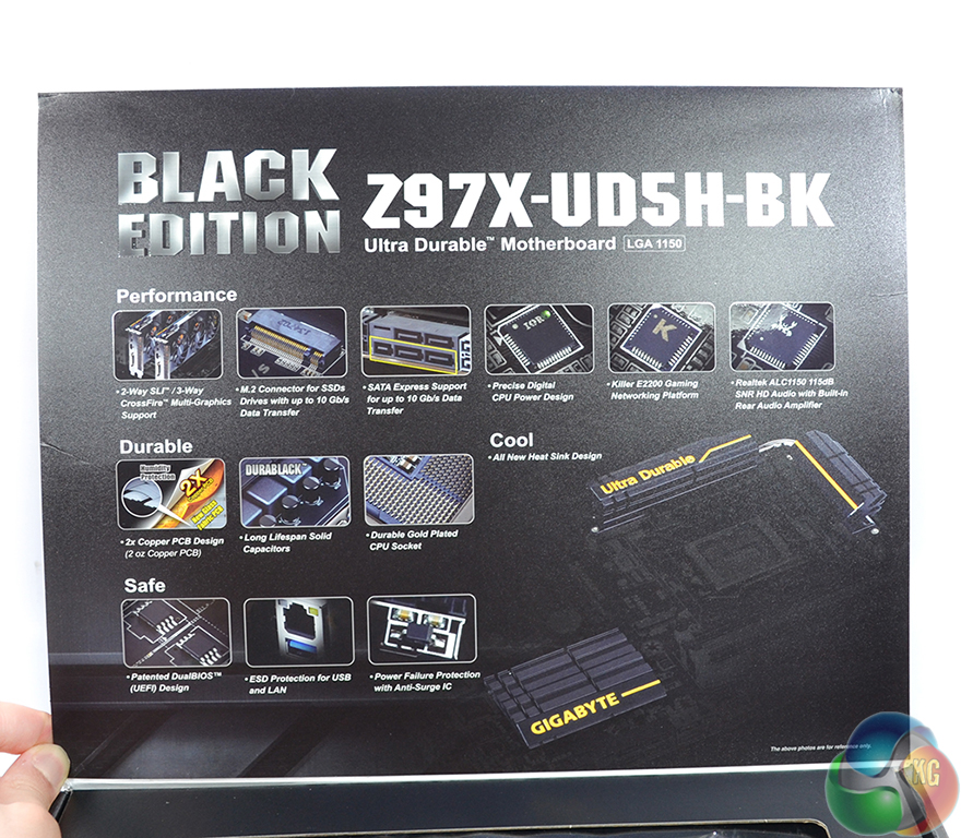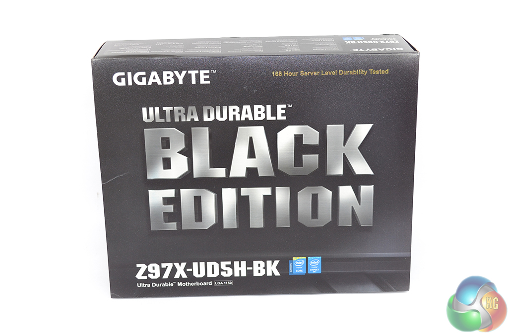 Sticking to the motherboard's Black Edition marketing, Gigabyte ships the Z97X-UD5H-BK in black packaging.