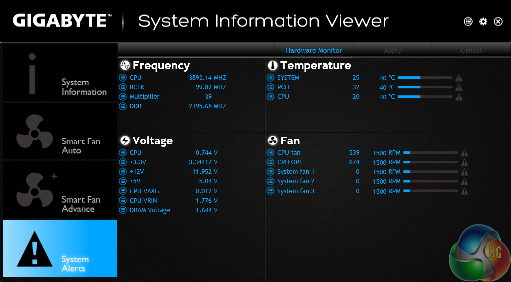 System information and fan speed settings can be tweaked via their own section in Gigabyte's software suite.