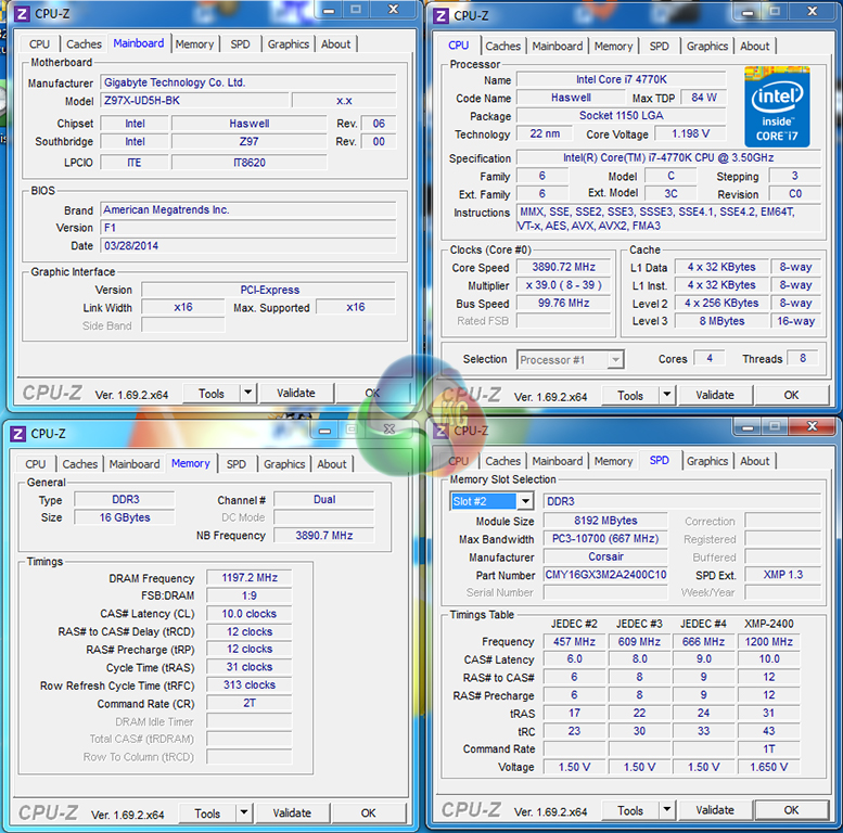 CPU-Z reports a core voltage of 1.20V for the 3.9GHz 4770K setting. This is a fairly common VID to use for Z87- and Z97-based motherboards with a 4770K CPU.