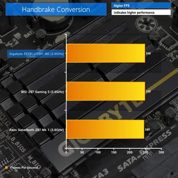 We measured the average frame rate achieved for a task of converting a 4.36GB 720P MKV movie to 720P MP4 format.