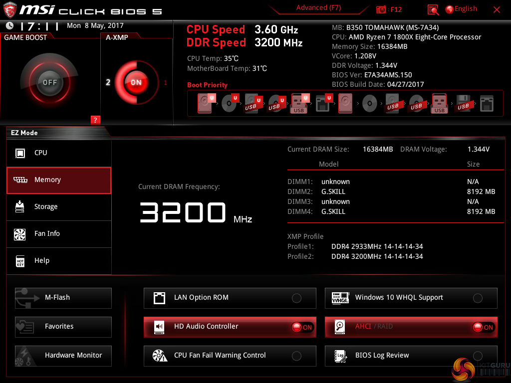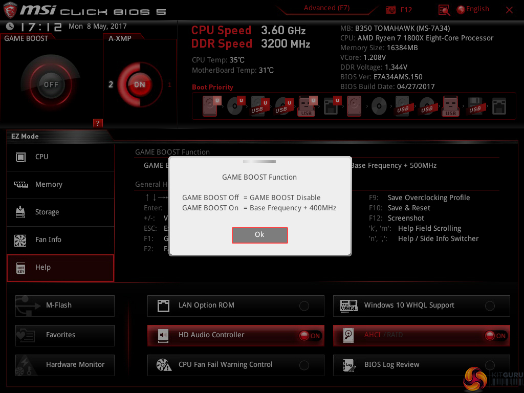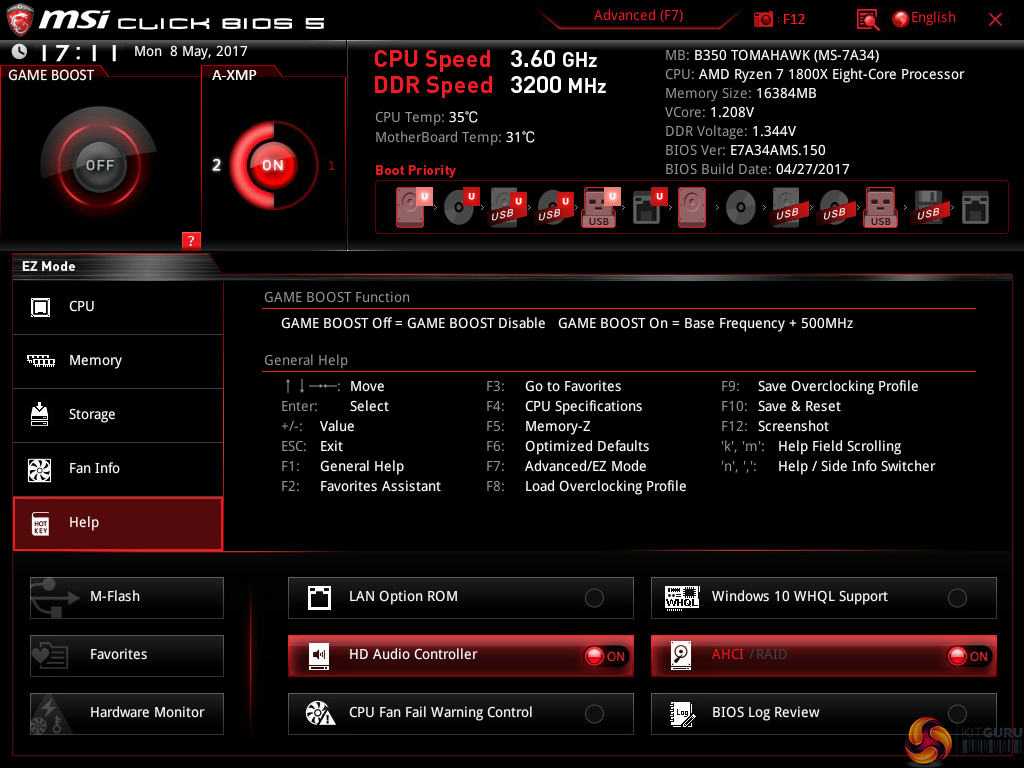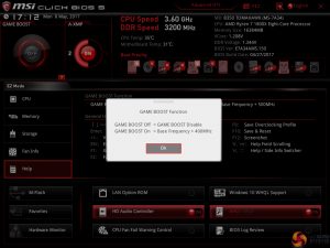 MSI’s version of EZ Mode is the best of all motherboard vendors as it features the most options but does not overcrowd the screen and remove the ease-of-use aspect. Buttons for simple A-XMP and Game Boost overclocking activation are smart moves.