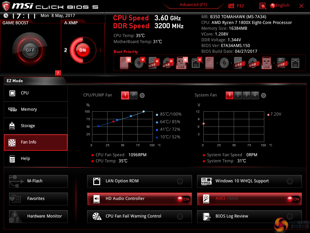 There is an adequate number of options relating to voltage, frequency, and settings adjustments and all are generally easy to find. However, if you want great flexibility for granular settings control, an X370 motherboard is the better option as the B350 models are more limited in this department. Being critical, the layout could be a little more segregated to reduce the amount of information on the single primary page.
