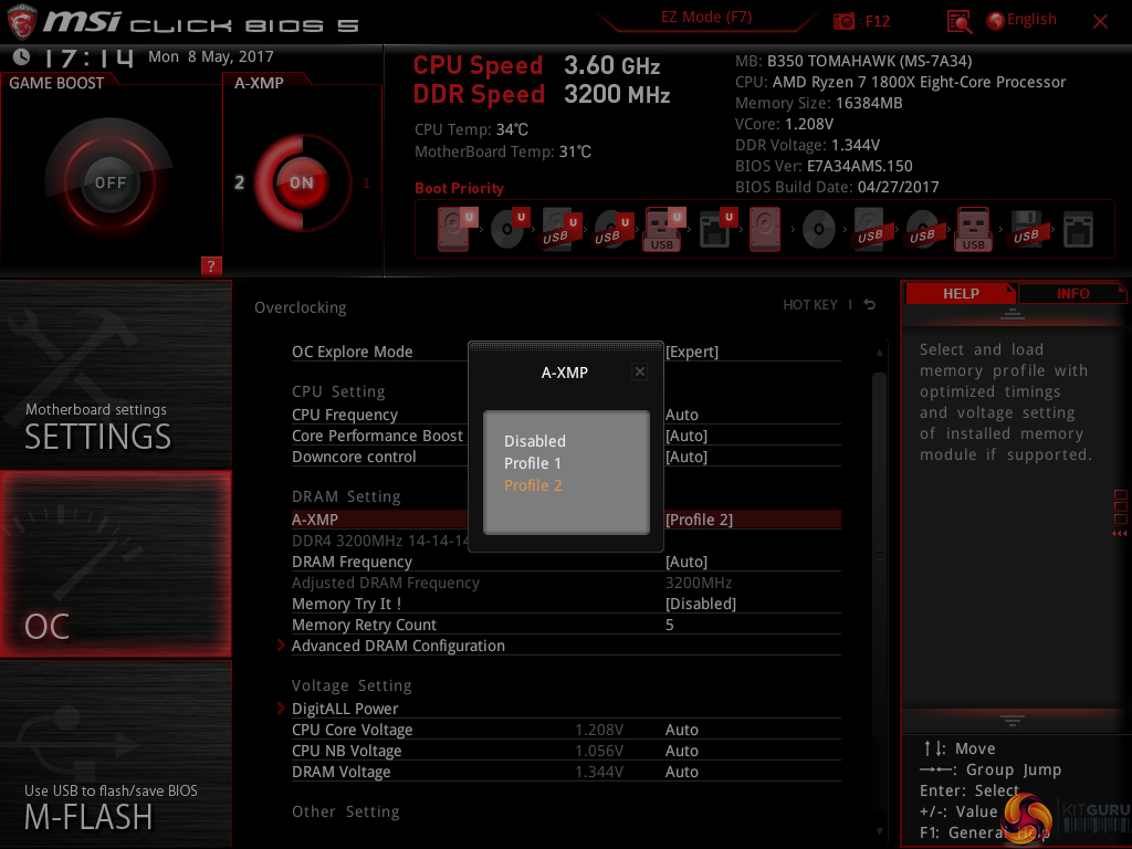 Options are also allocated for memory. Dividers up to 32x for 3200MHz can be selected, which is ideal for aiding flexibility to overclockers who are pushing their system with high-speed RAM. A-XMP is basically MSI’s way of loading up an XMP configuration on its AMD motherboards. This was a hassle-free, stable process using our 3200MHz G.SKILL Flare X memory modules.
