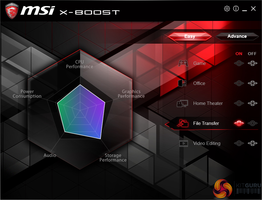 X-Boost features several system operation modes that use tweaked settings. There are presets for operations such as gaming and video editing. The game mode sets all performance metrics to a high importance while the video editing mode emphasises parameters important to such a task.