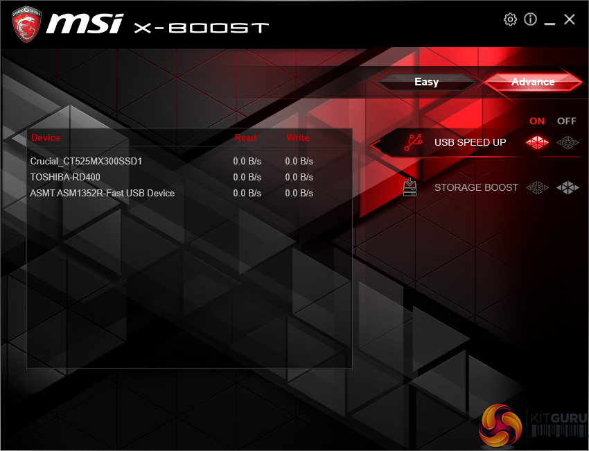 There is also the ability to speed up USB and storage devices. We have previously tested X-Boost with other motherboards and found it to offer little benefit to storage devices other than those based on USB 3.1 Gen 2.