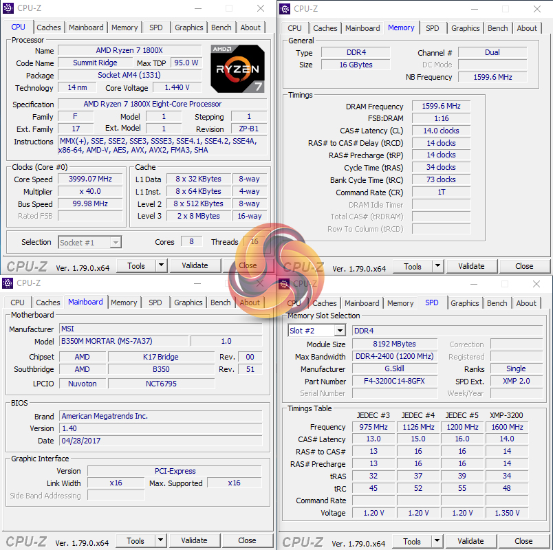 As a performance comparison, we have included the results from three B350 motherboards. The maximum overclocked configuration achieved with each board was a 4000MHz (40.0x100MHz) or 4050MHz (40.5x100MHz) processor frequency whilst using 3200MHz CL14 memory.