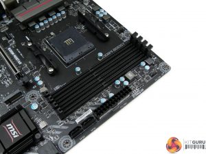 A slight negative of the DIMM slots is the single colour. Some novice users may not understand which slots should be used with a two-module kit for dual-channel operation. While MSI tried to make this clear with text on the motherboard PCB, competing vendors' solutions of using two different colours are better approaches.