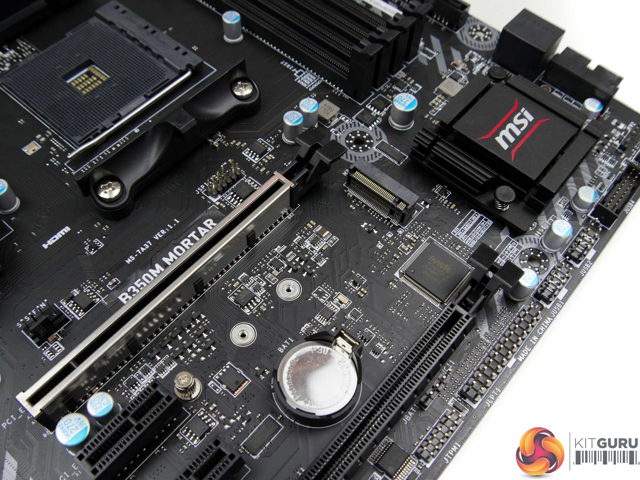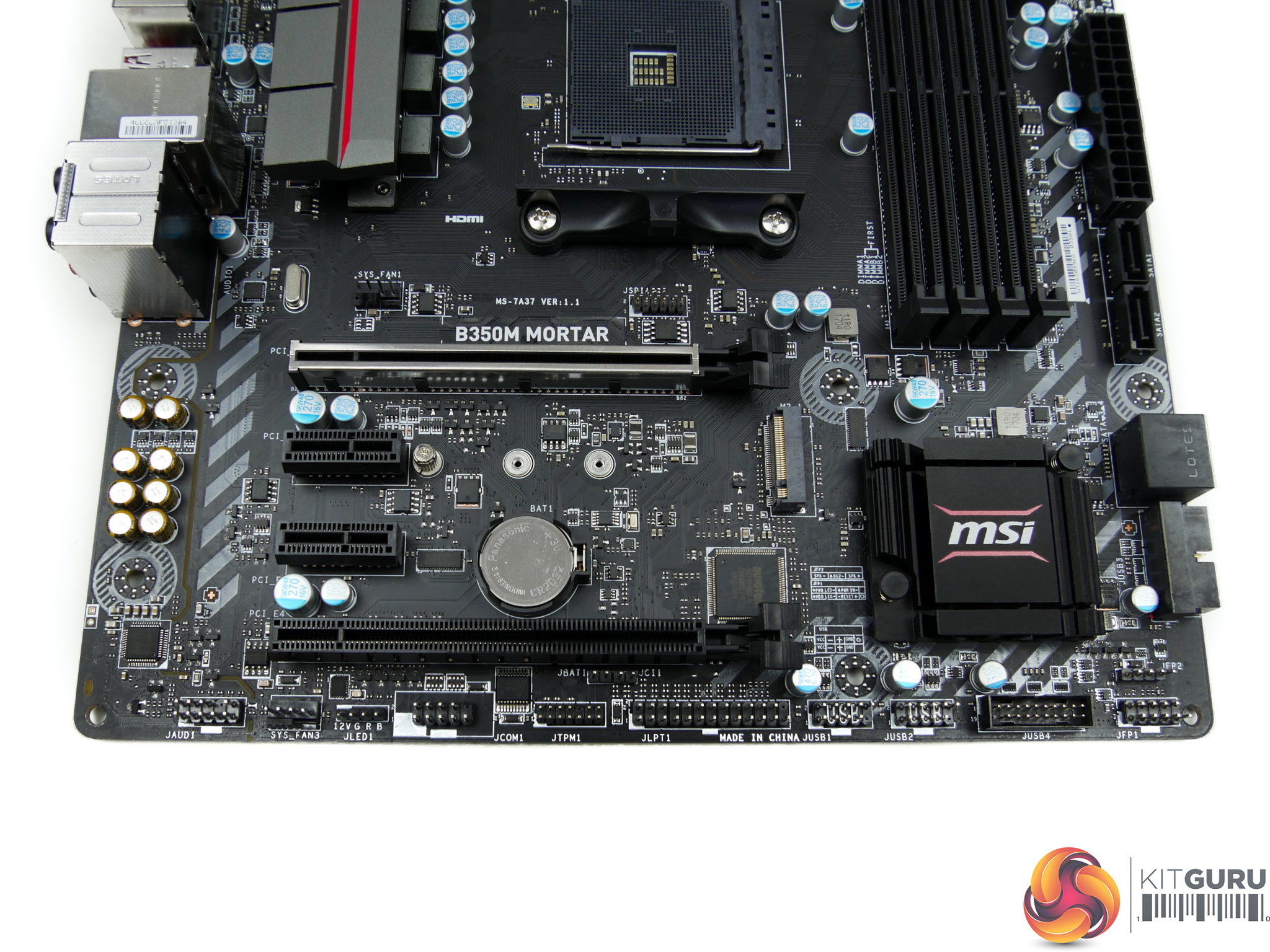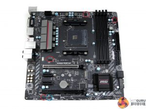 The MSI B350M Mortar uses black and grey styling that is practically identical to that observed with the B350 Tomahawk. A dark black PCB is good to see on a low-cost motherboard as the ugly brown alternative option can quickly ruin the appearance of a build.