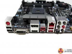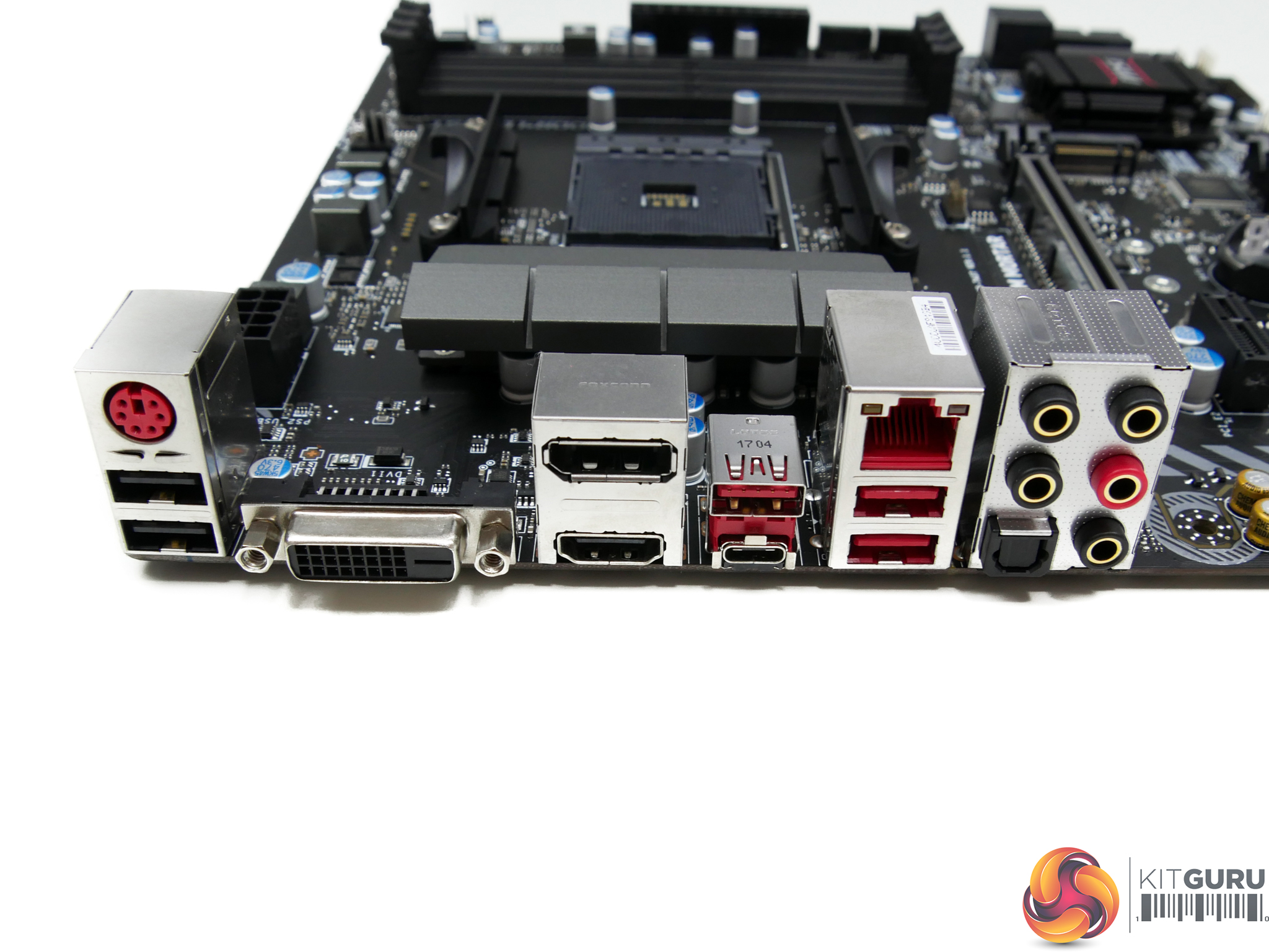 DVI-D, HDMI 1.4, and DisplayPort form the rear IO video outputs. Resolutions up to 1920×1200 at 60Hz are supported on the single-link DVI-D port, while HDMI offers 4K at a low refresh rate or lower resolutions (such as 1080P) at 60Hz. 4K60 capability is provided by the DisplayPort connector and MSI deserves credit for including this highly-capable port. These ports are only useable with an AM4-based APU, not a Ryzen processor.