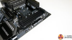 The MSI B550 Tomahawk follows MSI’s usual styling for this SKU. A large swathe of black, dark grey, and silvers form the colour scheme and there are no real contrasting elements. I personally like the board’s styling.