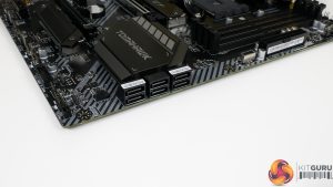 You also get a couple of 5Gbps USB 3.0 Type-A ports and two 10Gbps USB 3.2 Gen 2 ports fed by the AMD CPU, one of which is Type-C. I would have liked to see more Type-A USB ports as a total of five will be inadequate for some users and there is plenty of bandwidth and rear IO spacing spare.