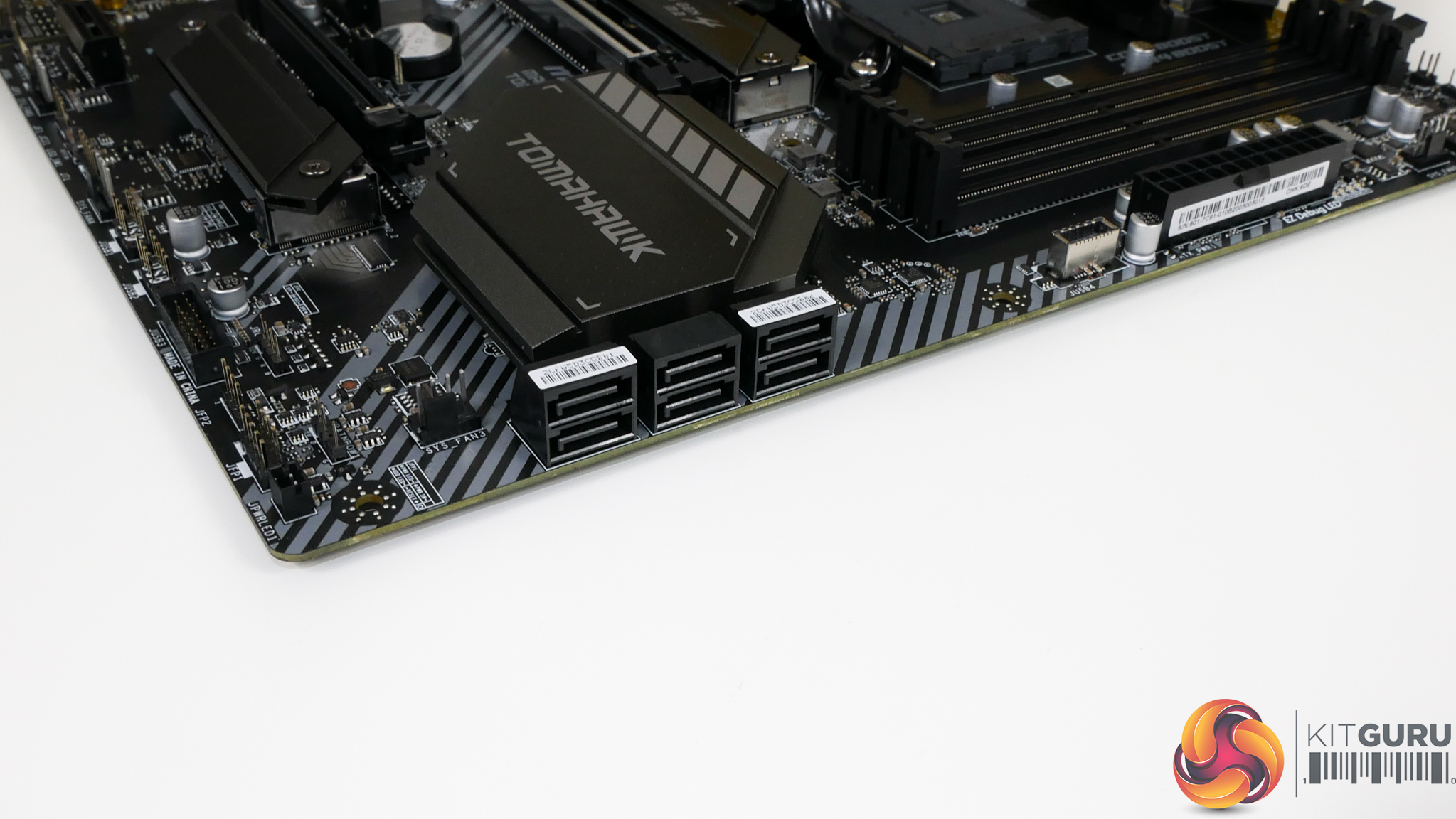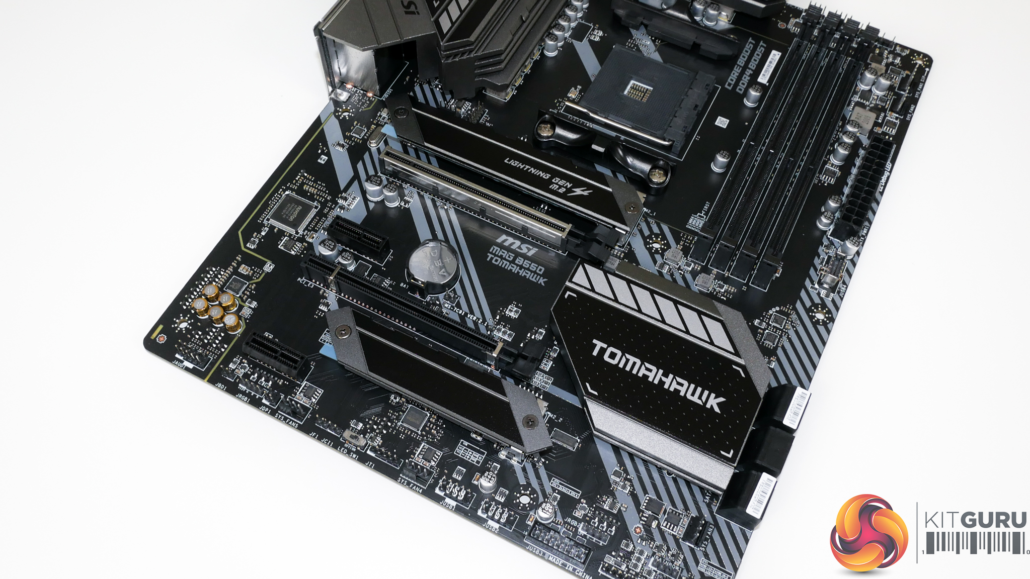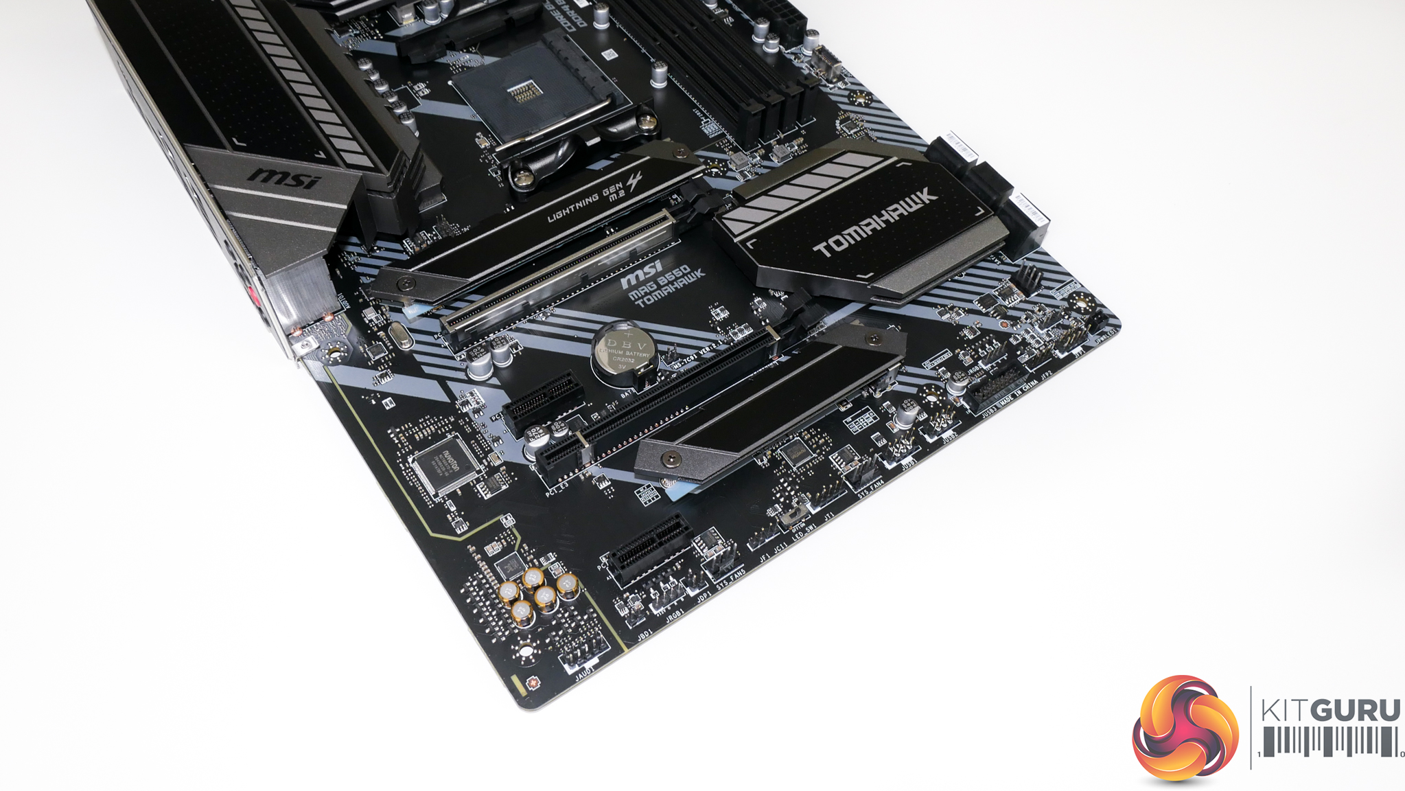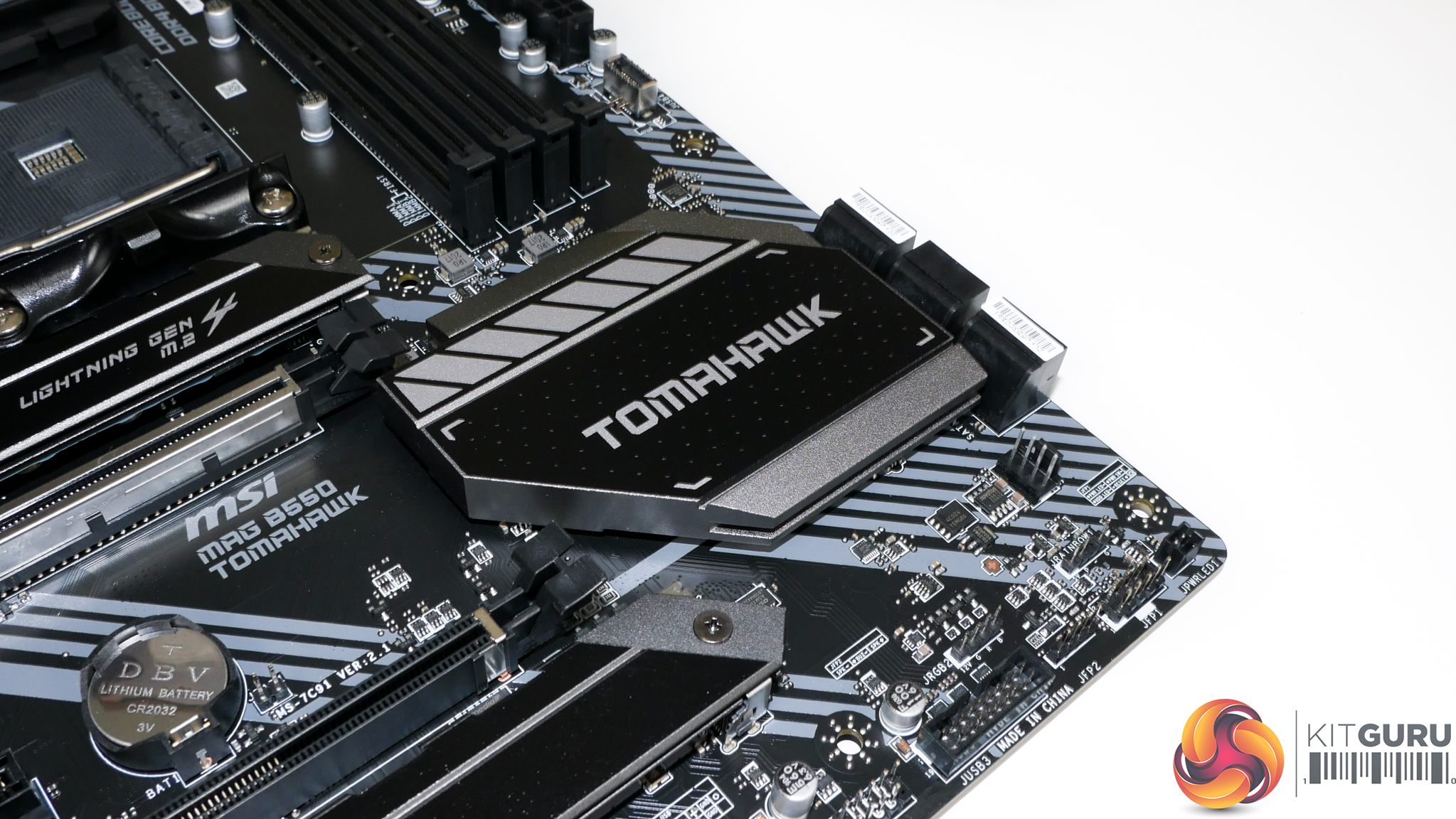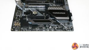 MSI outfits the B550 Tomahawk with dual M.2 slots, one of which supports drives up to 110mm long, with the other capable of housing 80mm variants as a maximum.