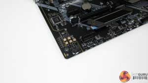 It is also slightly disappointing to see that some of the headers are not positioned directly on the edge of the motherboard. This is most notable with two of the lower RGB headers and will force users to trail cables over a small amount of PCB, rather than tuck them through chassis grommets with minimal untidiness on display.