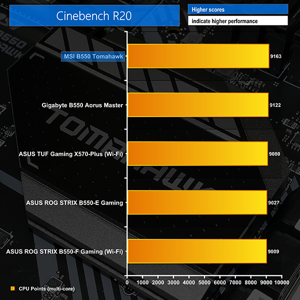 CPU-based performance from the MSI B550 MAG Tomahawk is very good. A number of chart-topping results are put forward, with MSI aided by the very recent AGESA update.