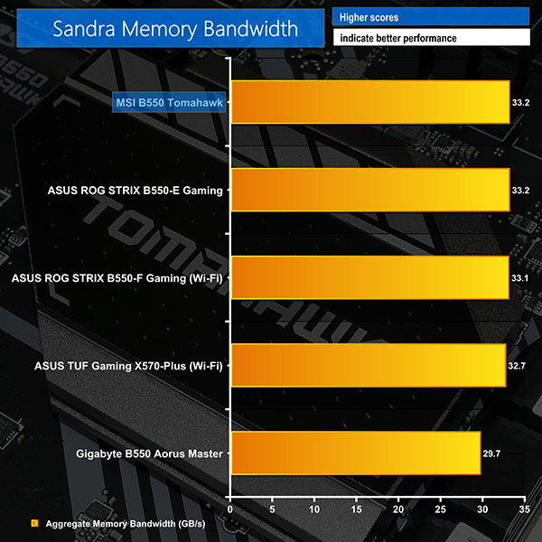 Another set of chart-topping results is shown in the memory tests. MSI’s board performs well on both the bandwidth and latency fronts. Again, the latest AGESA update helps significantly.