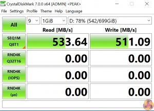 For SATA 6Gbps testing we use a Crucial MX300 750GB SSD.