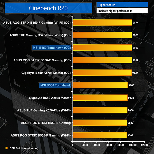 Pushing the CPU to 4.25GHz delivers a strong performance improvement for the Tomahawk when stressed with an all-core load.