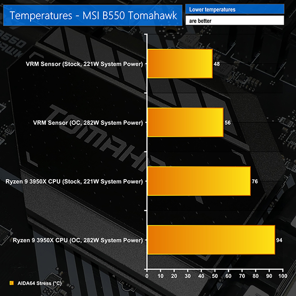 MSI’s powerful VRM solution is more than capable of handling our overclocked 16-core chip with relative ease.
