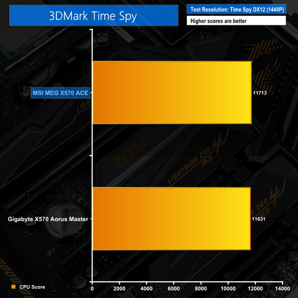 3DMark Time Spy shows a small lead for the MSI MEG X570 ACE in the CPU score. An extra few points here and there may be worthwhile when chasing records… or trying to one-up your friends.