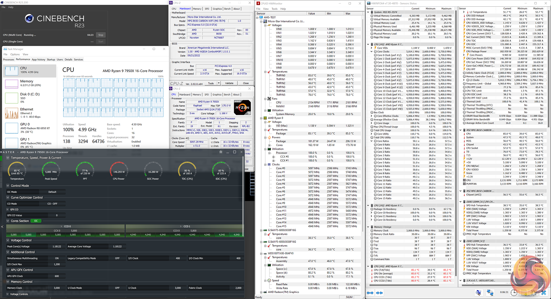 But our chip still ran at roughly 5.1GHz all-core on this MSI B650 board, which is roughly the same as the premium X670E Gigabyte option we tested.