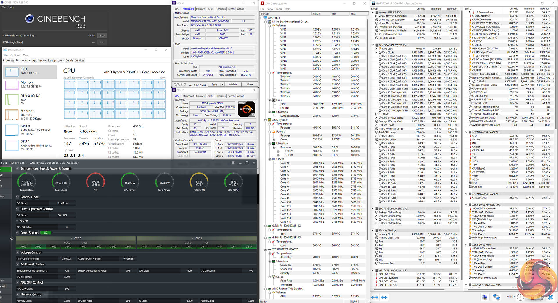 Not that 95C is an issue for Ryzen 7000 whatsoever. Particularly with MSI’s granular fan control in the UEFI that takes CPU cooling noise problems out of the 95C equation when running fans from the motherboard.