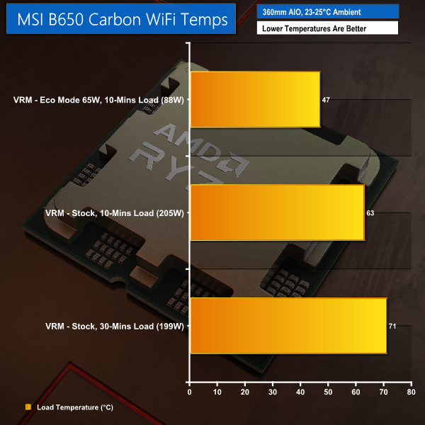 VRM cooling performance from the MSI B650 Carbon WiFi is very good.