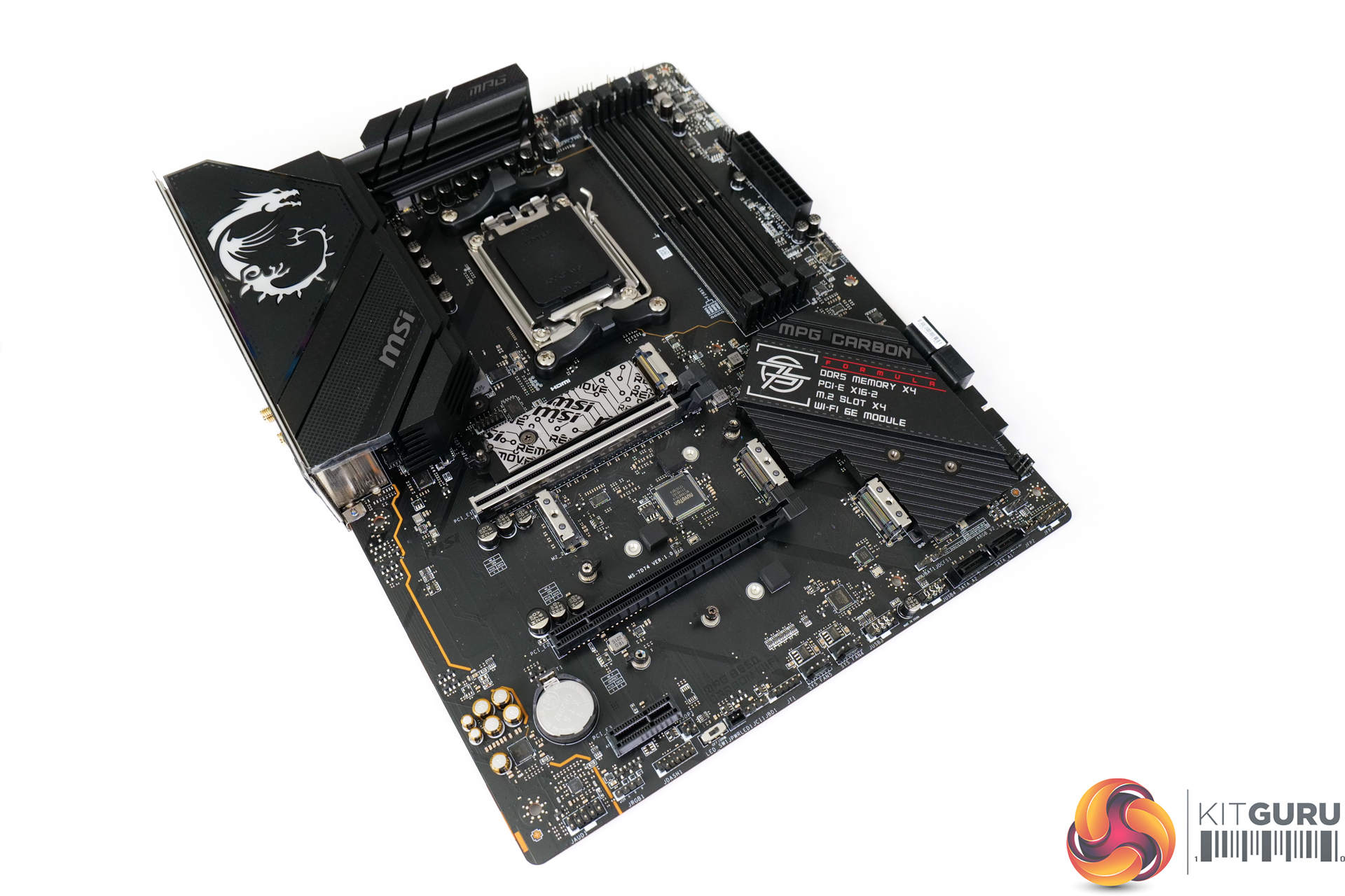 The B650 Carbon WiFi uses a 6-layer, 2oz copper PCB and feeds a CPU with dual-8-pin connectors.