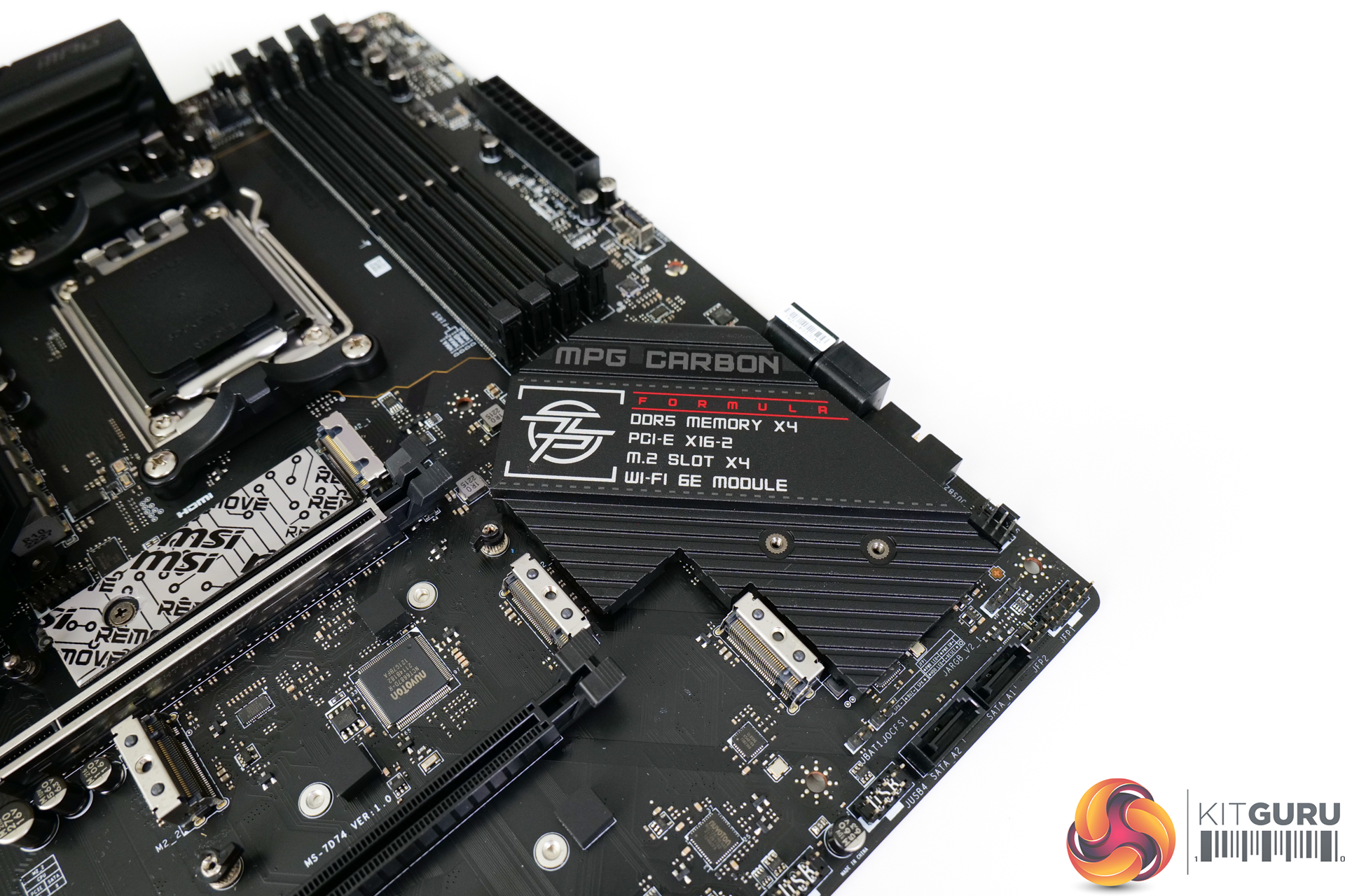 Regarding heatsinks, MSI has gone for the big-and-beefy approach. A large slab of metal covers the B650 chipset and this also acts as the hub for some of the M.2 metal strips to be screwed into.