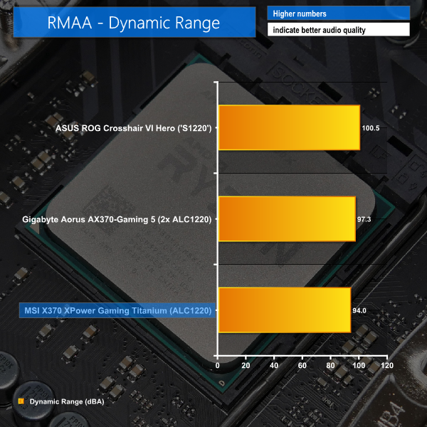 Audio performance for MSI's board is rated as ‘Excellent' by RMAA. In some of the key metrics, MSI's motherboard wasn't quite as strong as the performance offered by Gigabyte and ASUS competitors. However, the balance and retention of impressive performance throughout RMAA's test lead to a positive scoring.