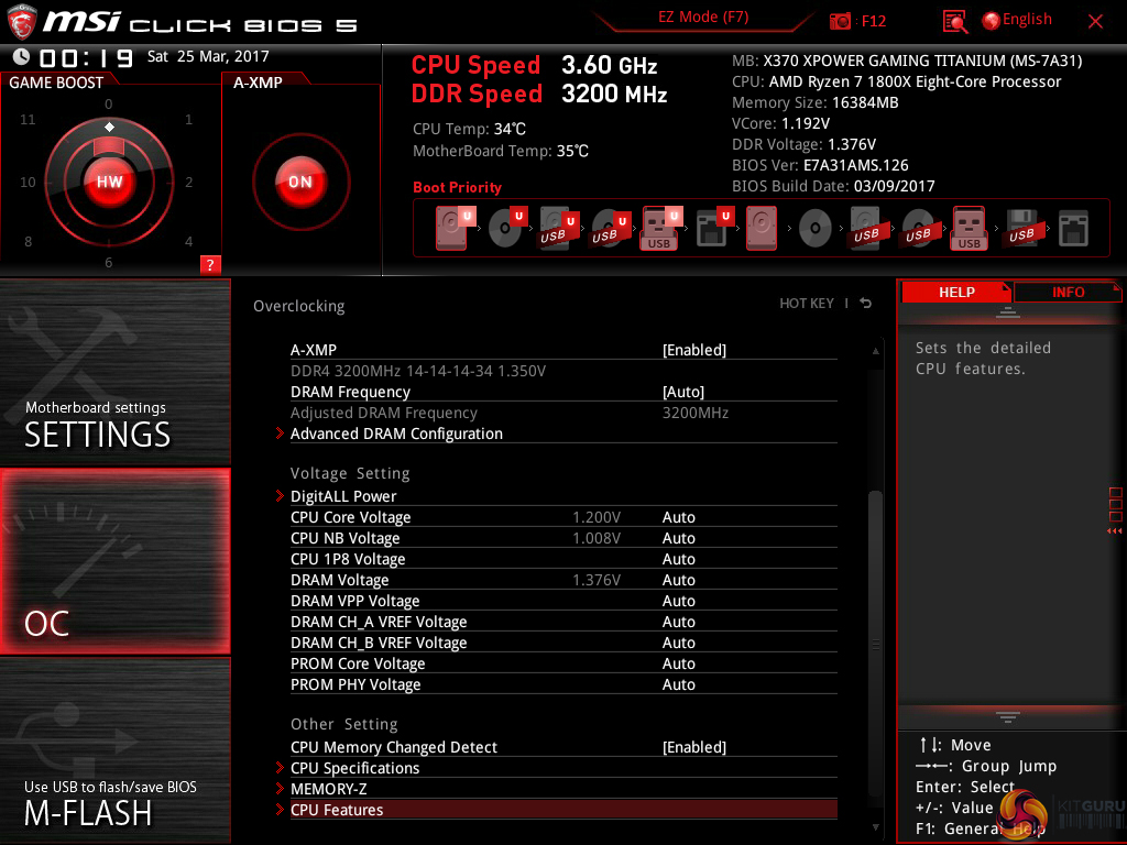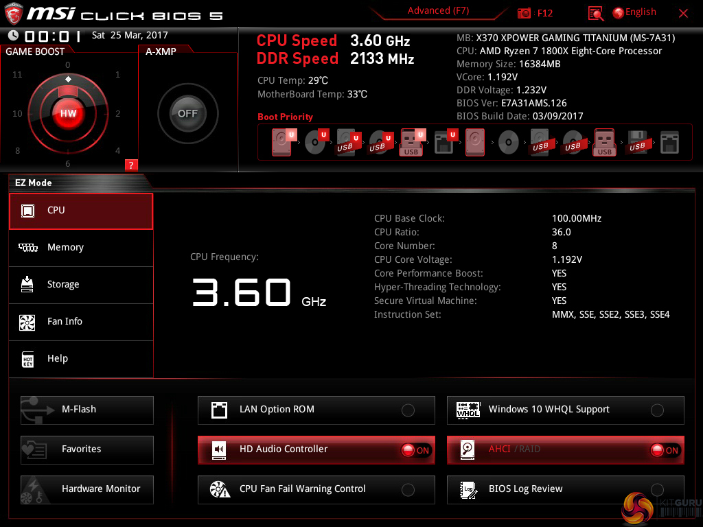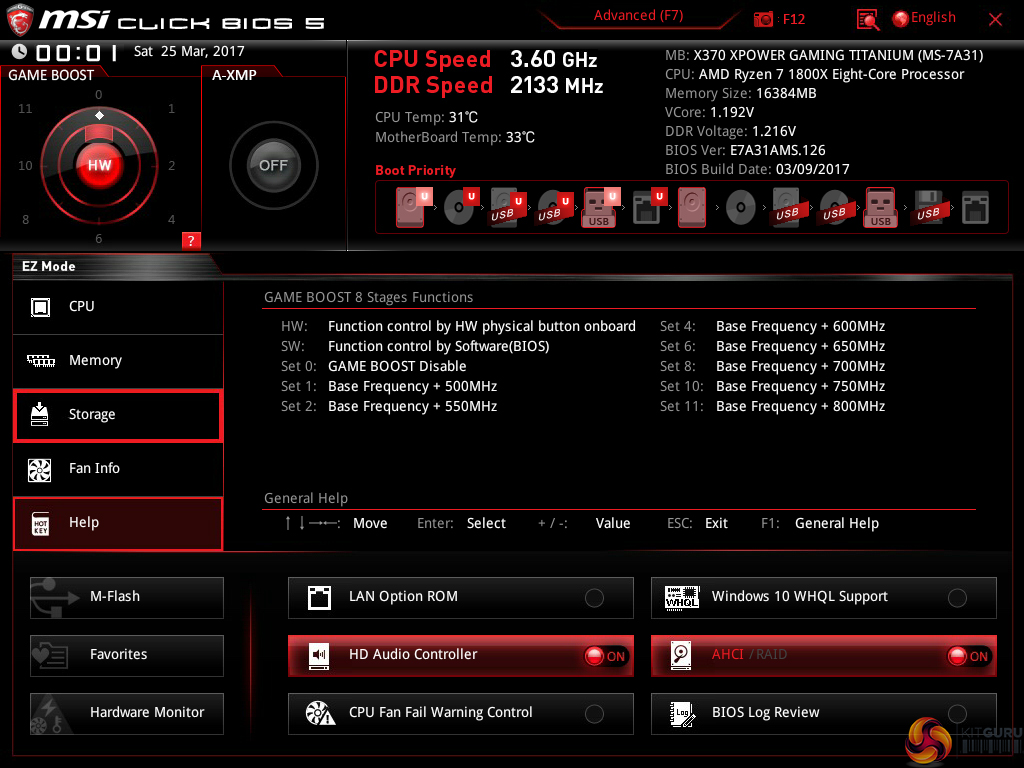 MSI’s version of EZ Mode is the best of all motherboard vendors as it features the most options but does not overcrowd the screen and remove the ease-of-use aspect. Buttons for simple A-XMP and Game Boost overclocking activation are smart moves.