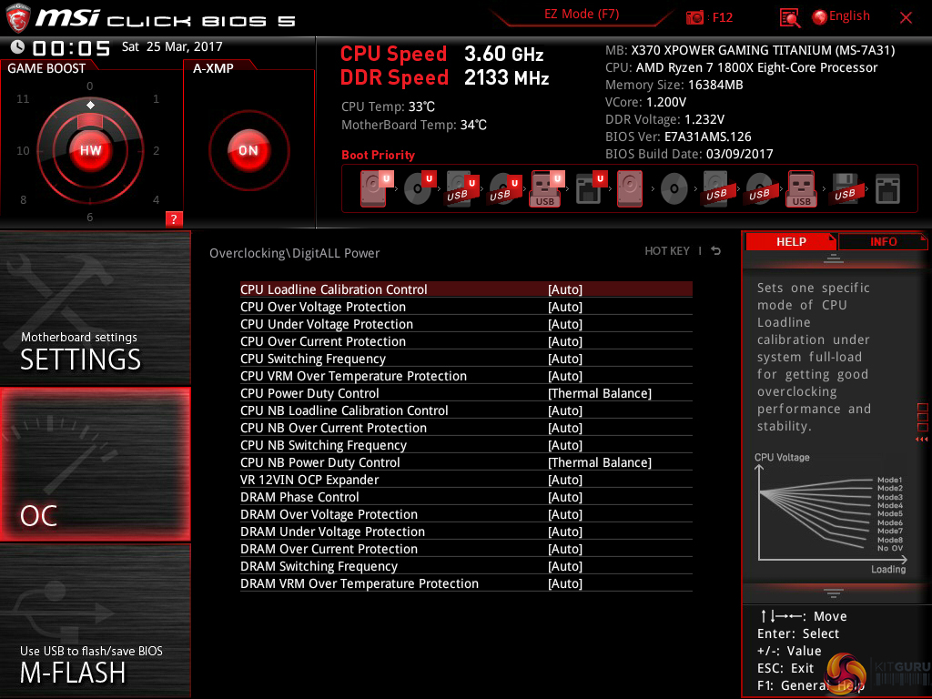 MSI's load-line calibration (LLC) settings are clear and functional, which cannot be said for the system deployed by Gigabyte and ASUS. Nine different options can be selected and MSI smartly uses a simple graph to show how the voltage changes based on load. Simple, yet functional. It certainly aided the simplicity of our overclocking attempts.