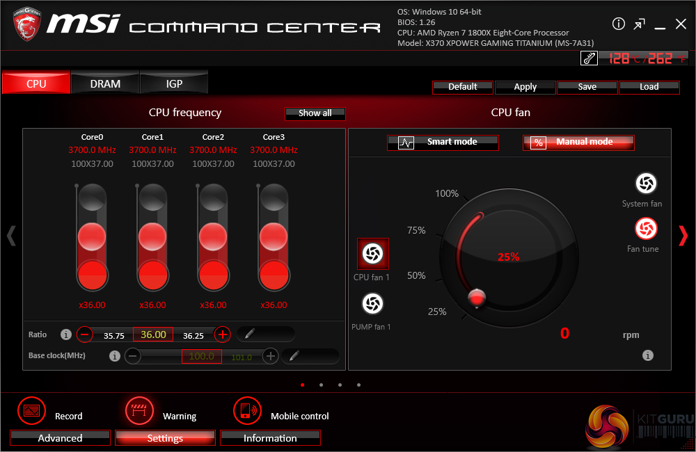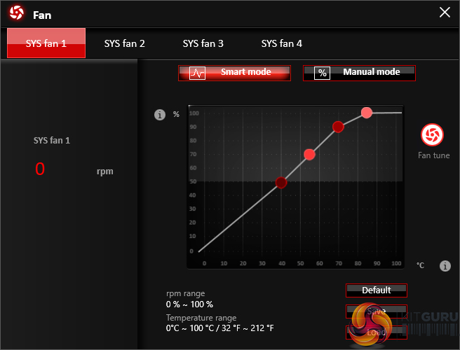 Fan tuning options in Command Center are good. There is an auto fan tuning mode which allows the system to adjust the fan speed curve to its perceived optimal design. User adjustment of the fan speed curves is also possible using a 4-point graph.