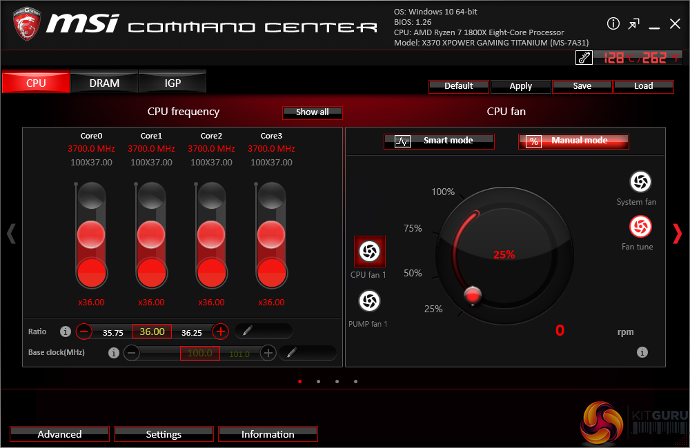 The software used for MSI's X370 motherboard is almost identical to that available for the Z270 offerings. As such, we have re-used the bulk of our analysis from those reviews and updated the text where there are subtle differences.