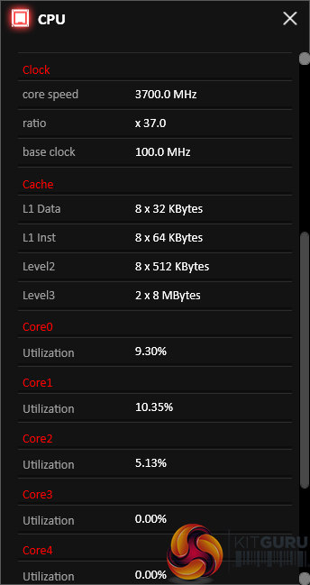 Command Center is the bread-and-butter of MSI’s OS-based software tools. Primary functionality of the system can be controlled here, including adjustment of multiplier ratios, clocks and voltages, and MSI’s Game Boost overclocking preset.