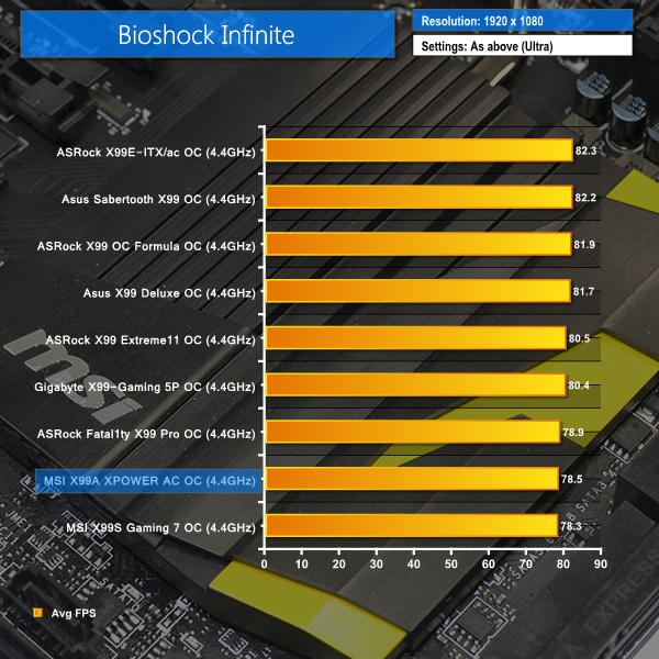 We will outline the performance increases that can be obtained from using the MSI X99A XPOWER AC motherboard to overclock our system. Our overclocked processor frequency was 4.4GHz and memory speed was 2666MHz.