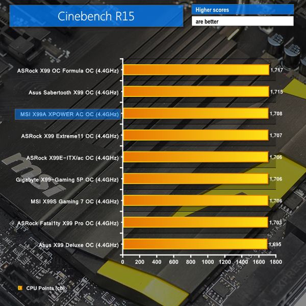 MSI's X99A XPOWER AC delivers solid overclocked performance where raw CPU-only results are concerned.