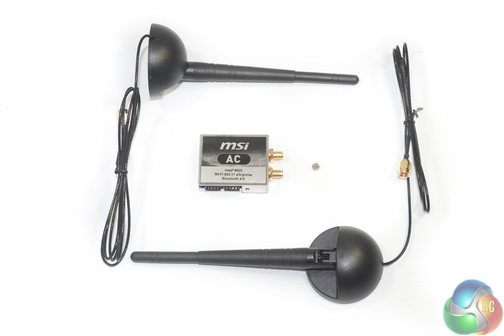 MSI includes two sizable WiFi aerials that have a magnetic base but only 90° of rotation. I would have liked to see more flexibility with antenna orientation.